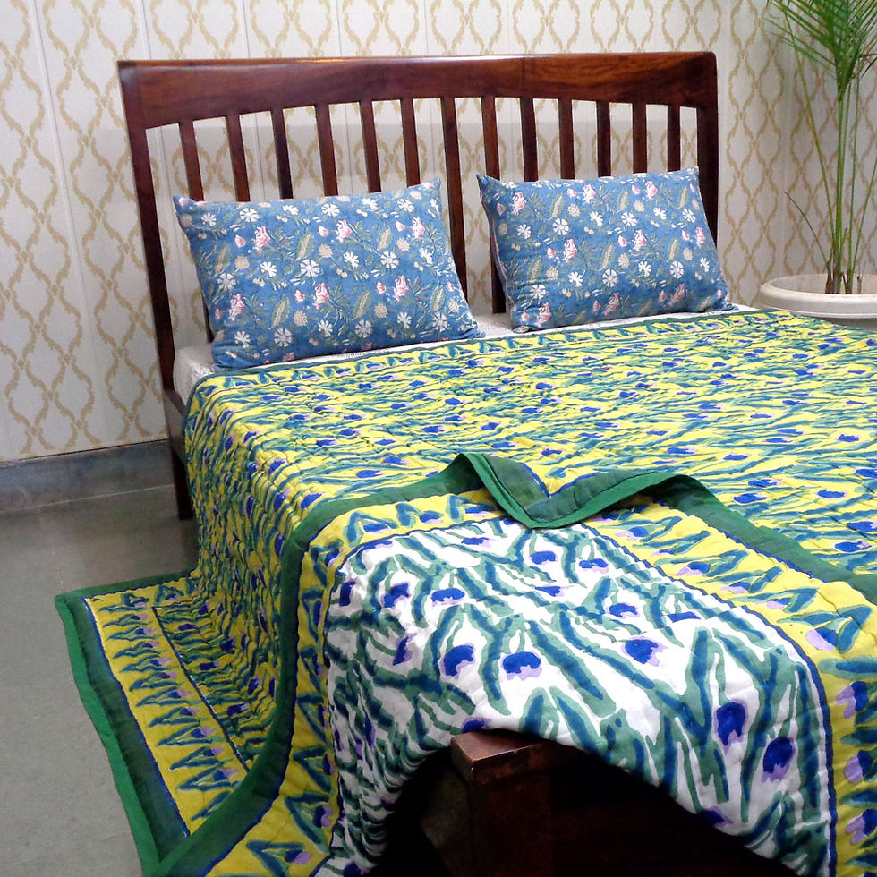 Hand Block Printed Reversible King Size Quilt