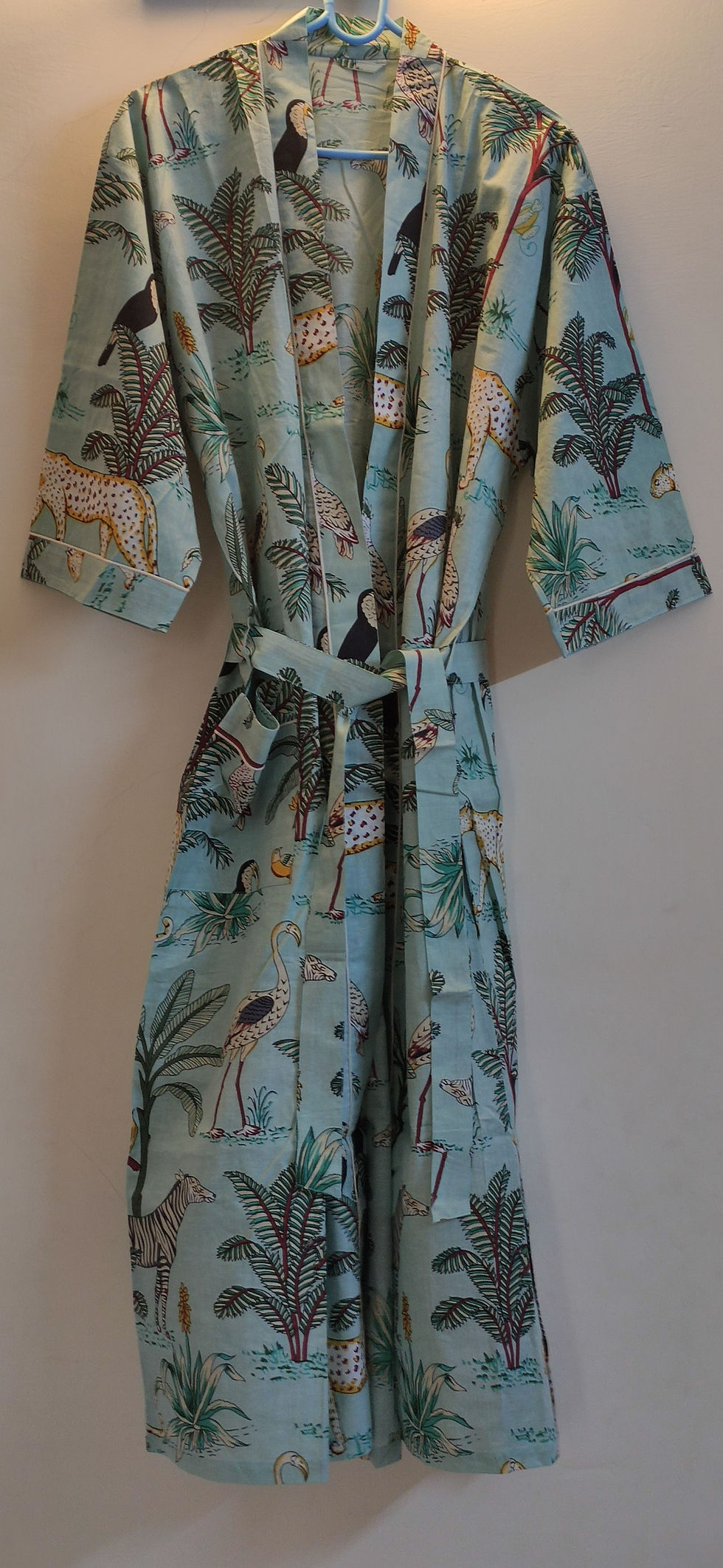 Jungle Safari Light Blue Cotton Kimono/Robe